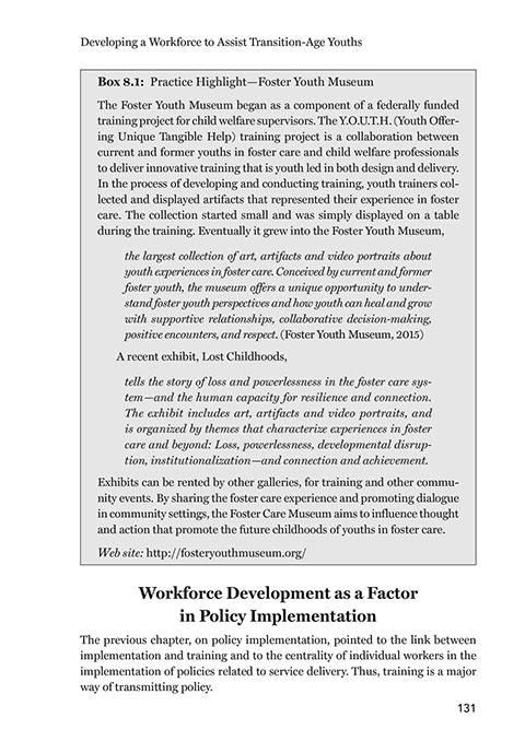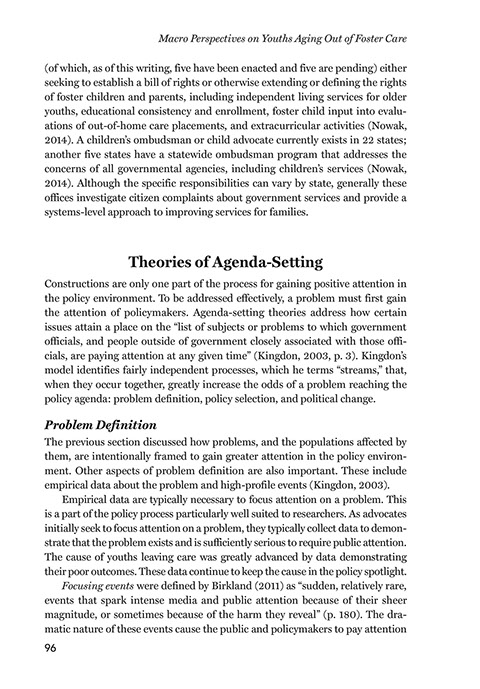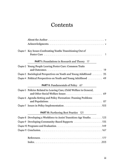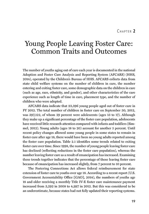 Full title = Macro Perspectives on Youths Aging Out of Foster Care. This design shows a common business book design which includes tables, boxes, glossary, and an index.