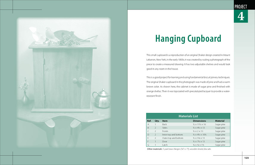 The first section of this book covers explanations of tools, materials, and techniques that will help you with the included projects and your own. The second half of the book contains step-by-step instructions on how to build select projects. The 4-color insert shows vivid images of the completed project and also has samples of different wood types.