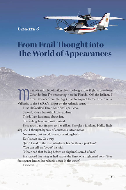 This story is an adventure in Richard Bach’s life as he traveled from the east coast to the west coast (USA) with his newly purchased amphibious small airplane. He detailed all the events throughout his trip with a journal and pictures. To give the design a tie to the topic of this book, I setup 6 different chapter openers each with Puff in flight representing the theme of the chapter. I represented Puff on each page using a screened image of the tail behind the page number.